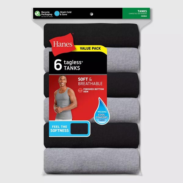 These feature soft & breathable cotton that feels great against your skin all day long. The finished bottom hem looks good worn outside or tucked in. These tanks are tagless and the bound neck and armholes resist wear and tear.Solid colors are 100% cotton, heathers are 75% cotton, 25% polyester. Available in a convenient 6 Pack.