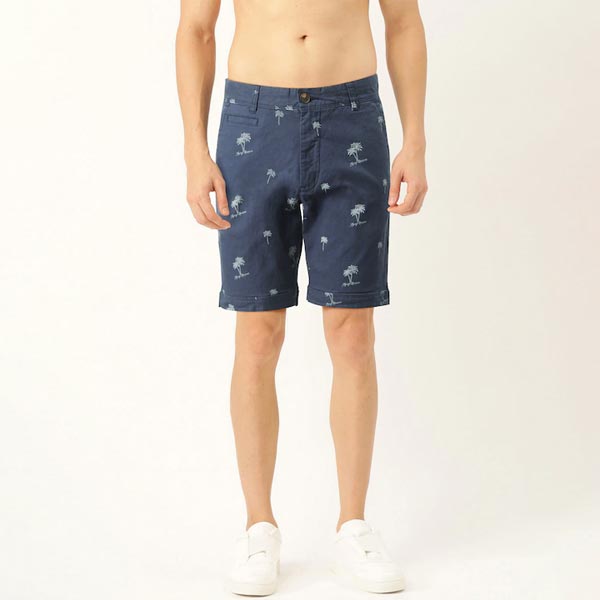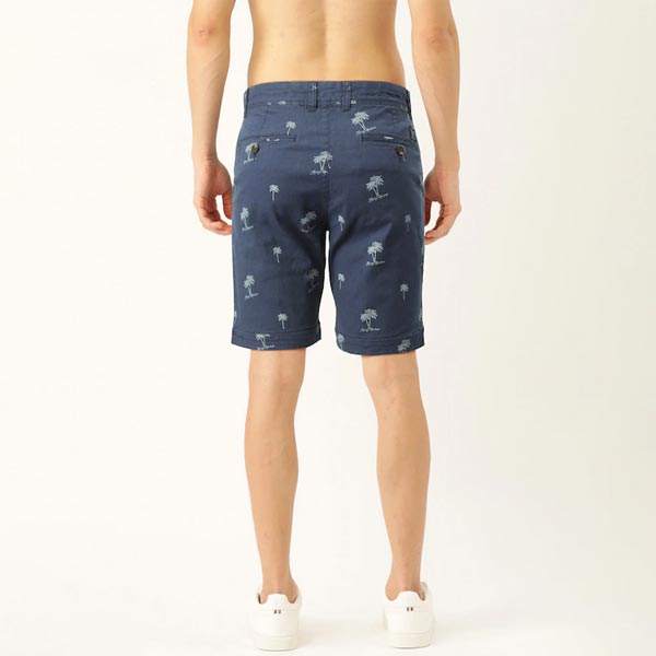 Men Navy Blue & White Tropical Print Slim Fit Chino Shorts
