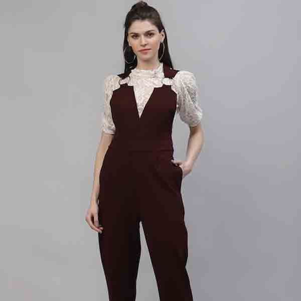 This burgundy jumpsuit from Athena has a gorgeous solid pattern! Just perfect for a day out with friends when you want to look fashion-focused while keeping a relaxed style.
